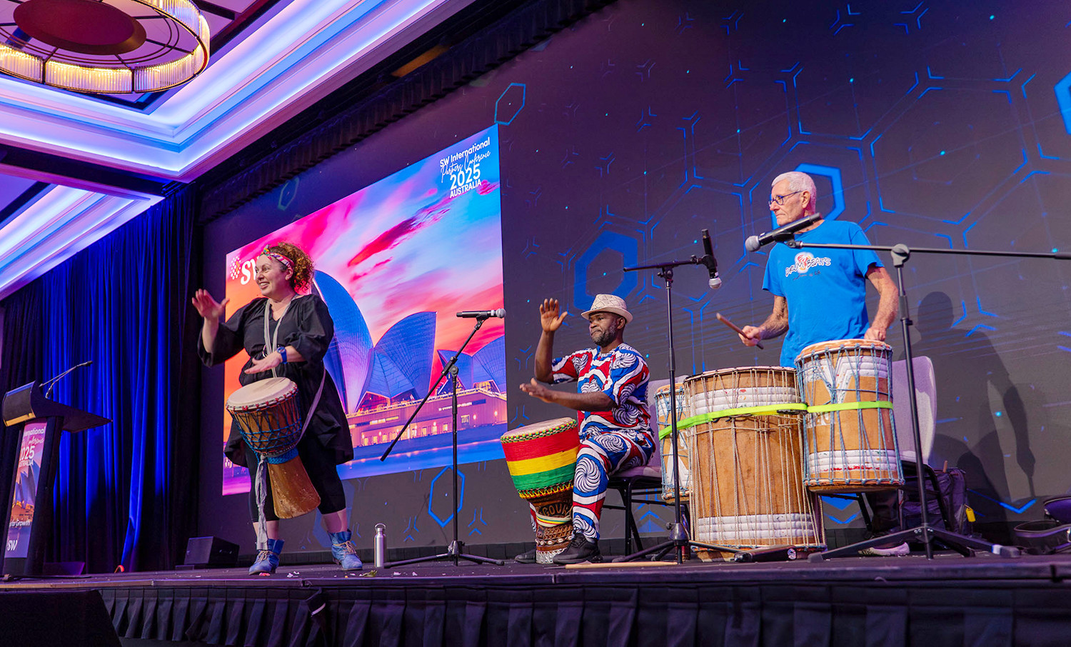 大会首日,首次举办了别开生面的“鼓动人心”领导力拓展活动。通过集体击鼓的互动形式,与会者在节奏协作中深化了团队默契与领导力共鸣。