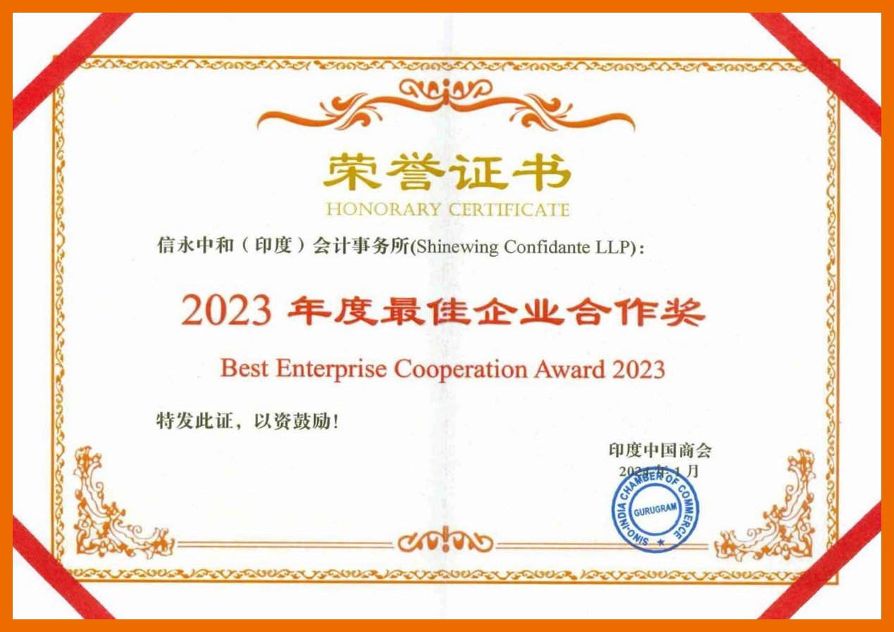2023年,信永中和印度所积极推动中印双边商务往来及贸易合作,为赴印中资企业提供优质的专业服务。这项荣誉,既是对于印度所过往成绩的肯定,也是对印度所无私奉献的工作态度的认可。2024年,信永中和印度所将持续提升自身业务能力,继续向赴印中资企业提供优质服务。