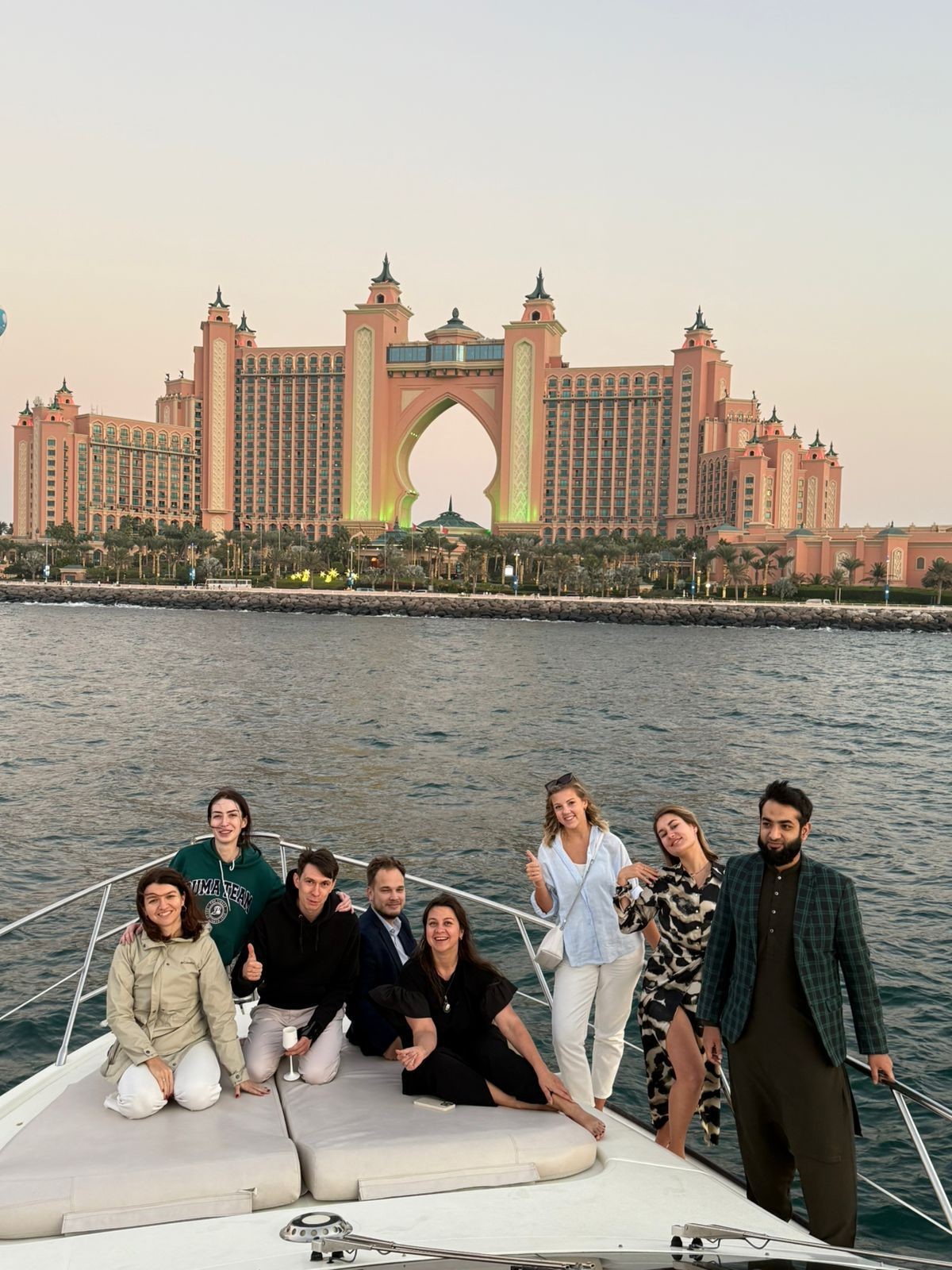 阿联酋团队沿美丽的海岸线乘船出游,庆祝一年的成绩和团队情谊。