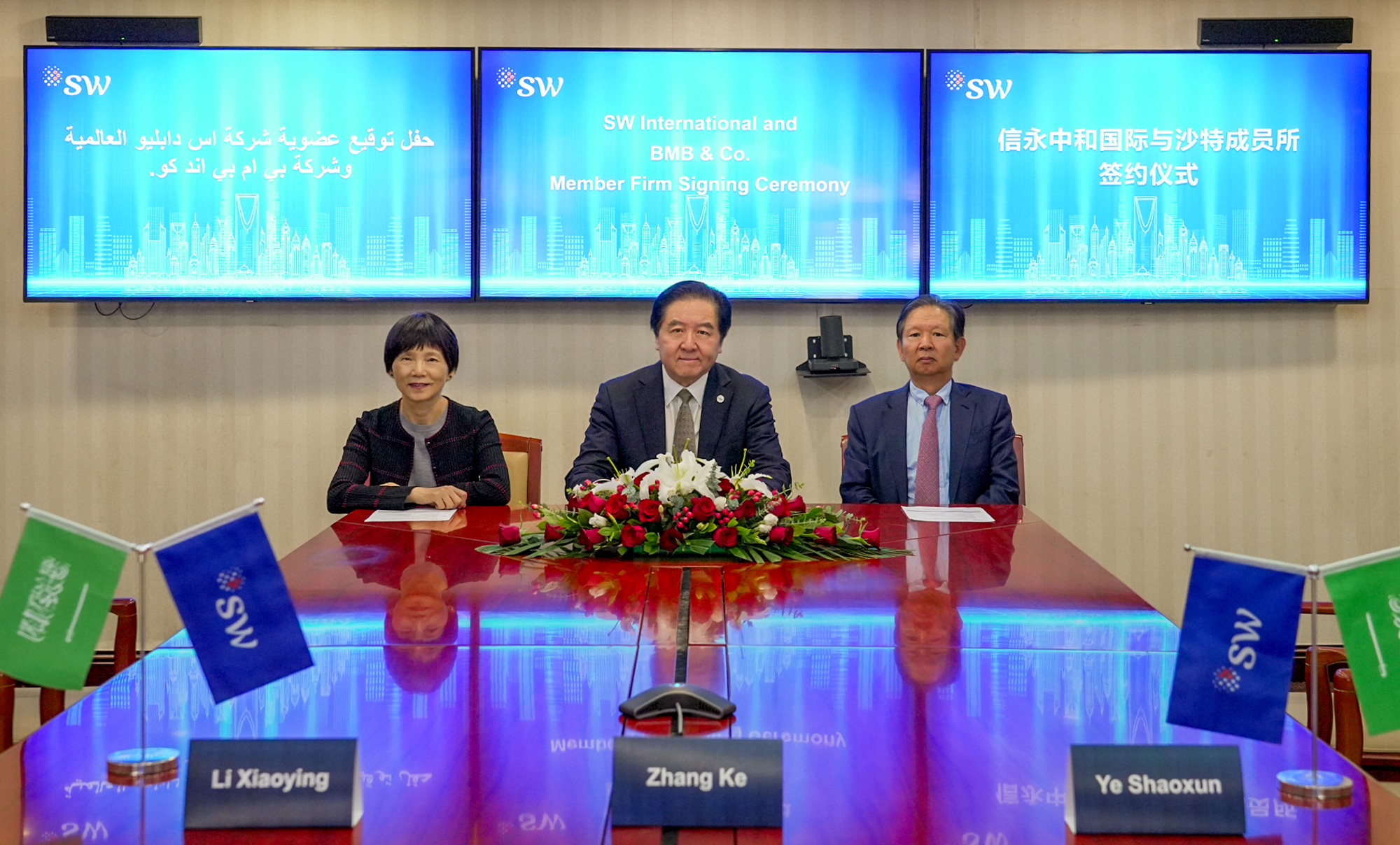 签约仪式由Marco Carlei主持,信永中和董事局全体成员、沙特BMB&Co创始人Bassam Mohammed Al-Baqawi带领沙特11名合伙人及总监共同参会。根据协议,新机构将正式作为沙特唯一代表加入信永中和国际,同步更名为 “SW BMB”。
