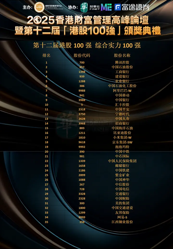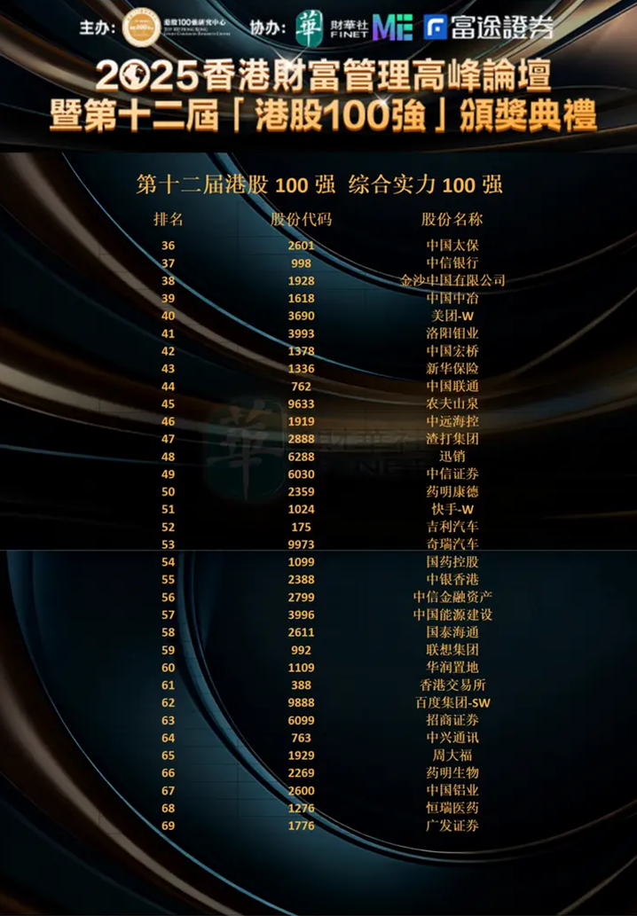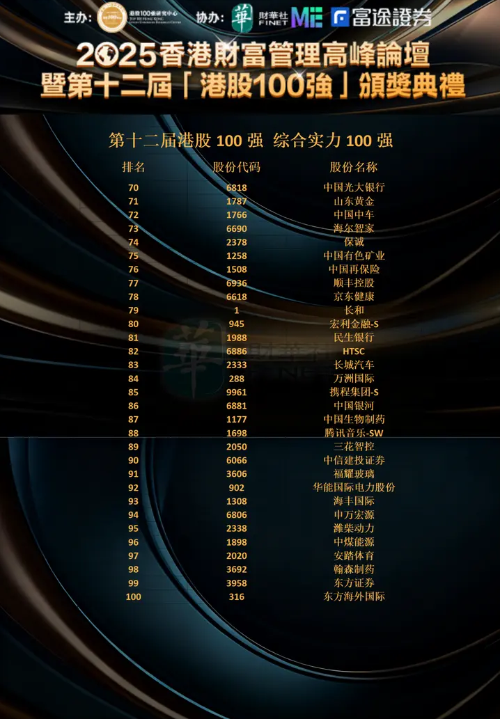 附 第十二届港股100强“综合实力100强”榜单: