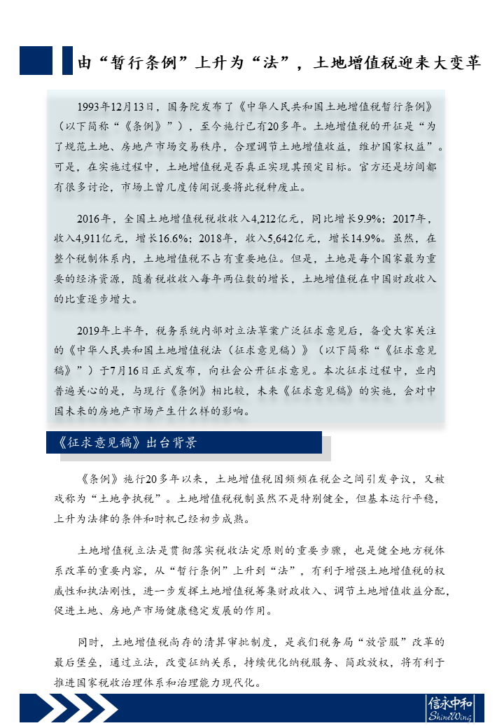 信永中和税务观察——由“暂行条例”上升为“法”,土地增值税迎来大变革